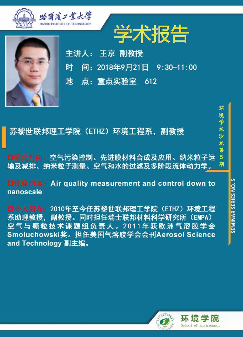 应搜书吧 /城市水资源与水环境国家重点实验室马军教授和何旭讲师邀请,瑞士联邦理工学院(ETHZ)王京教授将于2018年9月21日访问我校,并作学术报告,欢迎全校感兴趣的师生参加。学术讲座信息如下: