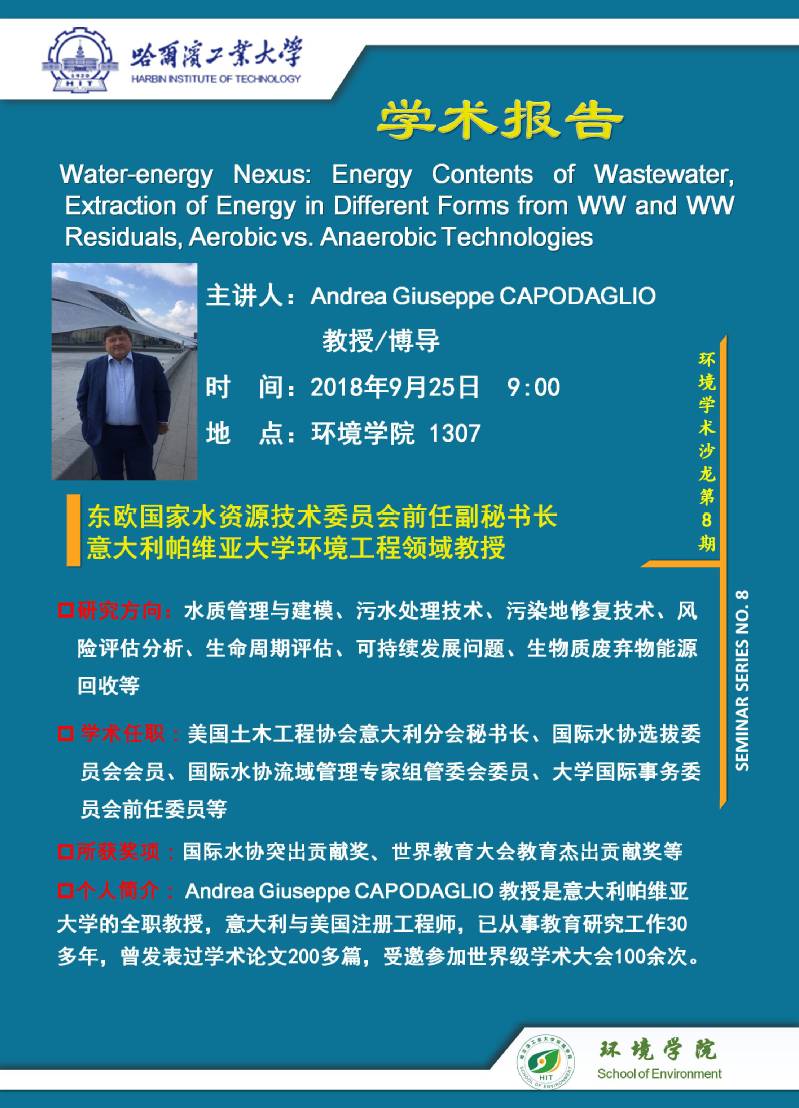 邢德峰老师的邀请,意大利帕维亚大学 Andrea Giuseppe CAPODAGLIO 教授将于2018年9月25日访问搜书吧