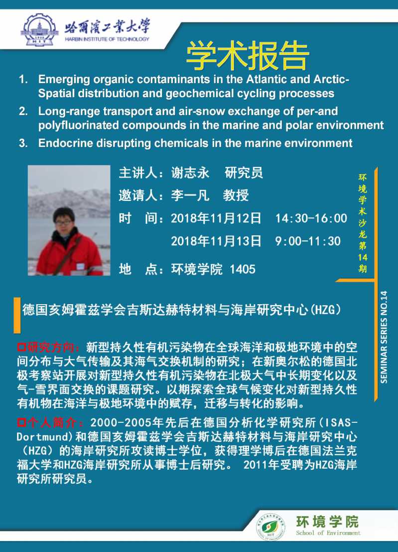 应李一凡教授的邀请,德国亥姆霍兹学会吉斯达赫特材料与海岸研究中心(HZG)谢志永研究员将于2018年11月12日至13日访问搜书吧 并进行学术交流,欢迎全校感兴趣的师生参加。学术讲座信息如下: