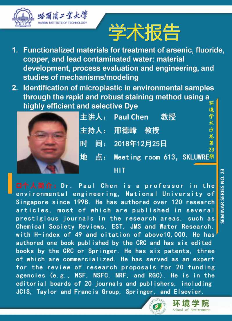 新加坡国立大学 Paul Chen教授将于2018年12月25日访问搜书吧 并进行学术交流,欢迎全校感兴趣的师生参加。学术讲座信息如下: