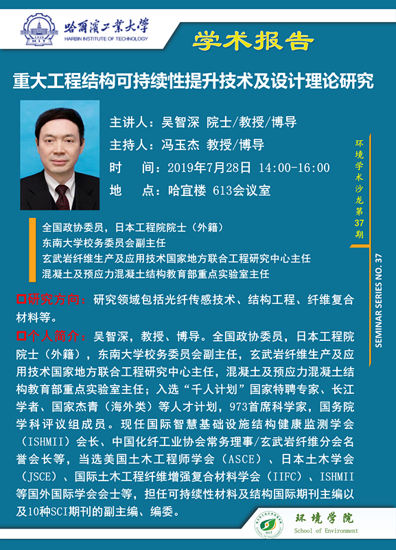 全国政协委员,日本工程院外籍院士,东南大学校务委员会副主任,玄武岩纤维生产及应用技术国家地方联合工程研究中心主任,混凝土及预应力混凝土结构教育部重点实验室主任吴智深教授将于2019年7月28日访问搜书吧 并进行学术交流,欢迎感兴趣的师生参加。
