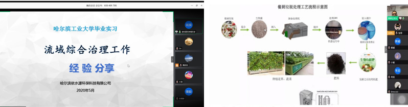 如华北设计研究总院有限公司智慧中心张宝副主任从智慧水务的概念与目标、水务的发展历程、智慧水务监控系统及智慧水务云端服务平台、智慧水务规划设计等几个方面介绍了当前实际生产中智慧水务的应用情况。王铭广高级工程师则以餐厨垃圾的性质及处理现状为切入点,为同学们介绍了目前应用的一些餐厨垃圾处理设备的优缺点,通过比较现有设备的一些局限性,王总介绍了面向家庭、企业、公共场所的便携餐厨垃圾处理设备,并从原理、工艺、参数及应用等方面进行了技术的全面展示。在上述5个实习过程中,同学们与企业专家进行了网络互动,收获满满。