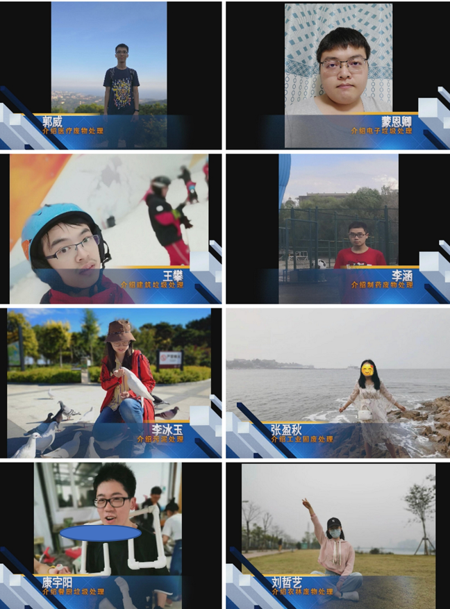 根据各位教师的研究方向及主讲课程特色,优化配置形成了水污染控制组、大气污染控制组、固废污染控制组、生态治理组及可持续发展组,并将全系52位同学随机分配到上述5组。相较于传统的生产实习,本次“云端”实习分为三阶段进行。第一阶段,各小组指导教师根据行业发展特色,总结了相关领域的经典技术、创新性技术及集成技术,要求学生按方向进行相关工艺机理、工艺特征、运行参数、工程实践等方面的学习;第二阶段,各小组邀请指导教师及企业专家进行多次讨论、修改,并制作展示视频,5个小组通过集成,形成了5部“环境工程技术微电影”(每部时长1小时左右);第三阶段,组织云端答辩,分工分角色凝练展示,全体毕业实习指导教师参与点评,实习过程中,还注重了课程思政要素的融入,通过实习,增强了学生的时代责任感、使命感和爱国热情。如水污染控制组制作的视频,展示了涵盖给水处理、城市污水处理、工业废水处理与资源化等多方面内容的典型处理工艺,分区域案例比较分析,数据挖掘等工作,并结合疫情讨论水卫生安全的关键技术要点,从专业的角度阐述了如何同舟共济,共克时坚;固废污染控制组以固体废物处理处置与资源化为主题,涵盖了餐厨垃圾、污泥、农林废物、建筑垃圾、工矿业废物、电子垃圾、医疗废物、制药废渣的处理处置与资源化的典型处理工艺、典型处理流程的案例等。总体上,5个小组的同学活跃云端,积极参加相关学习及创作。展示了哈工大搜书吧 环工学子的的自主学习、组织能力及团队协作能力,全面展现了哈工大搜书吧 环工学子的风采。