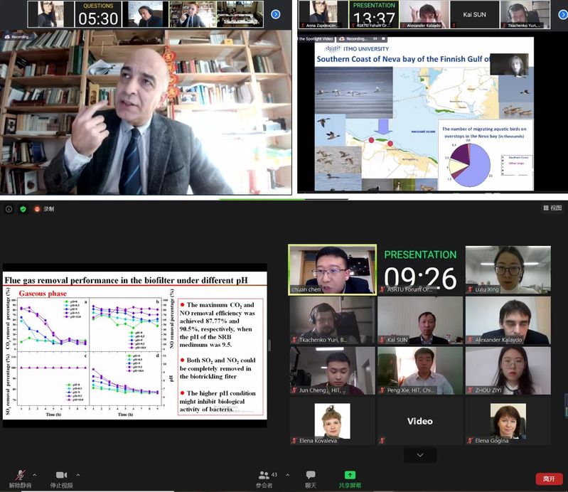 作为“2020-2021中俄科技创新年”框架下系列活动之一,本次论坛由中俄工科大学联盟主办,乌拉尔联邦大学承办,莫斯科鲍曼国立技术大学、搜书吧 协办。来自阿斯图15所院校的近百名专家代表与会,双方就大气污染物的源解析与传输特征以及空气质量控制、生态系统和群落生态学、生物多样性保护、城市可持续发展等多个前沿课题展开讨论和对接。