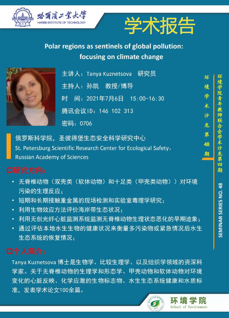 俄罗斯科学院,圣彼得堡生态安全科学研究中心Tanya Kuznetsova研究员将于2021年7月6日搜书吧 师生进行学术交流,欢迎感兴趣的师生参加线上学术报告会。