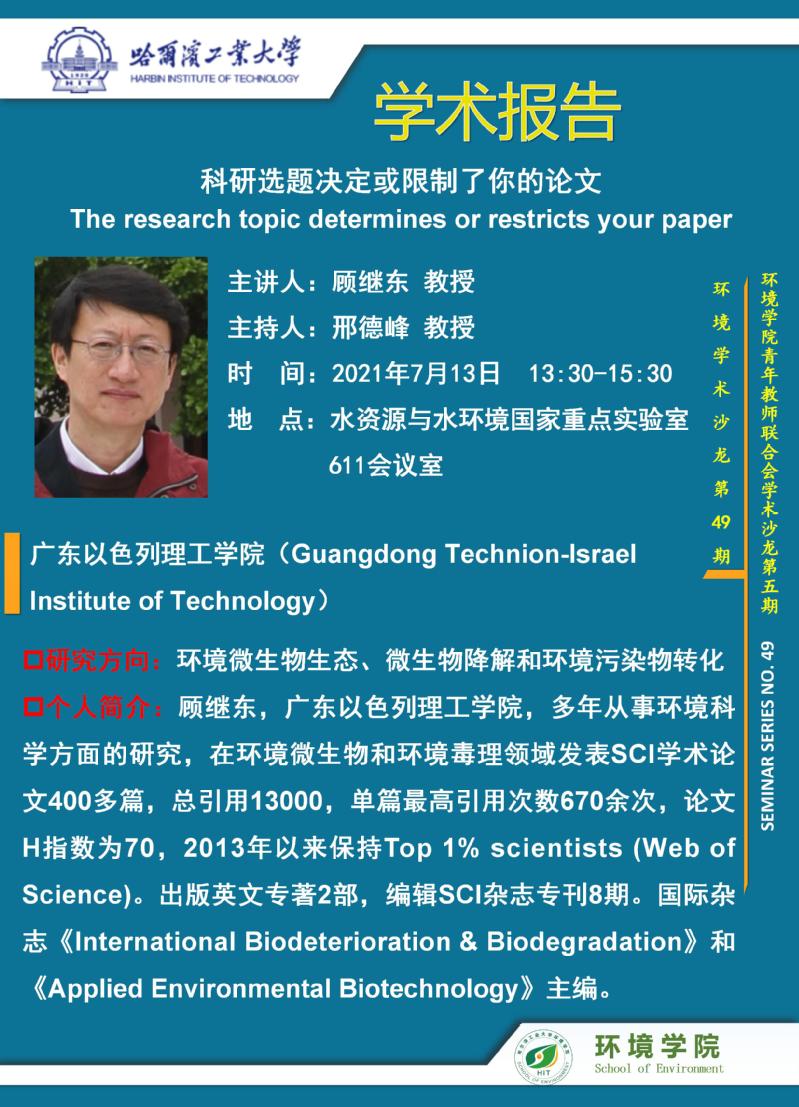 广东以色列理工学院顾继东教授将于2021年7月13日访问搜书吧 并进行学术交流,欢迎感兴趣的师生参加。