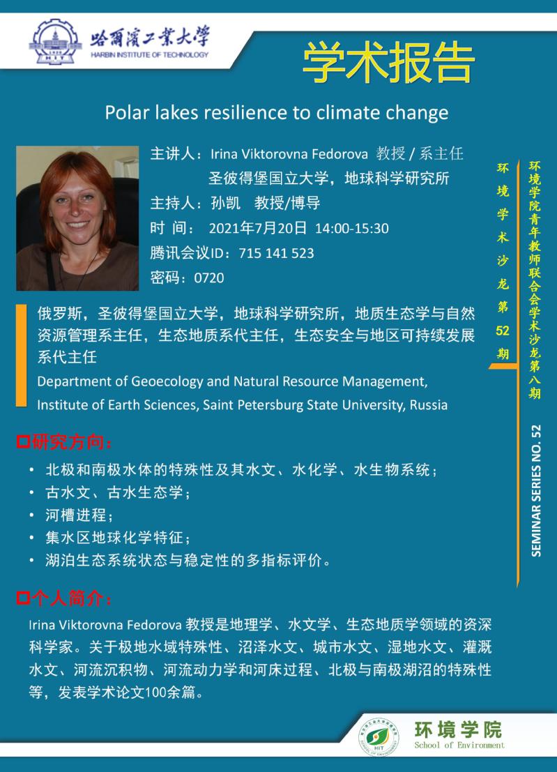 俄罗斯圣彼得堡国立大学,地球科学研究所,地质生态学与自然资源管理系主任,生态地质系代主任,生态安全与地区可持续发展系代主任Irina Viktorovna Fedorova教授将于2021年7月20日与搜书吧 师生进行学术交流,欢迎感兴趣的师生参加线上学术报告会。