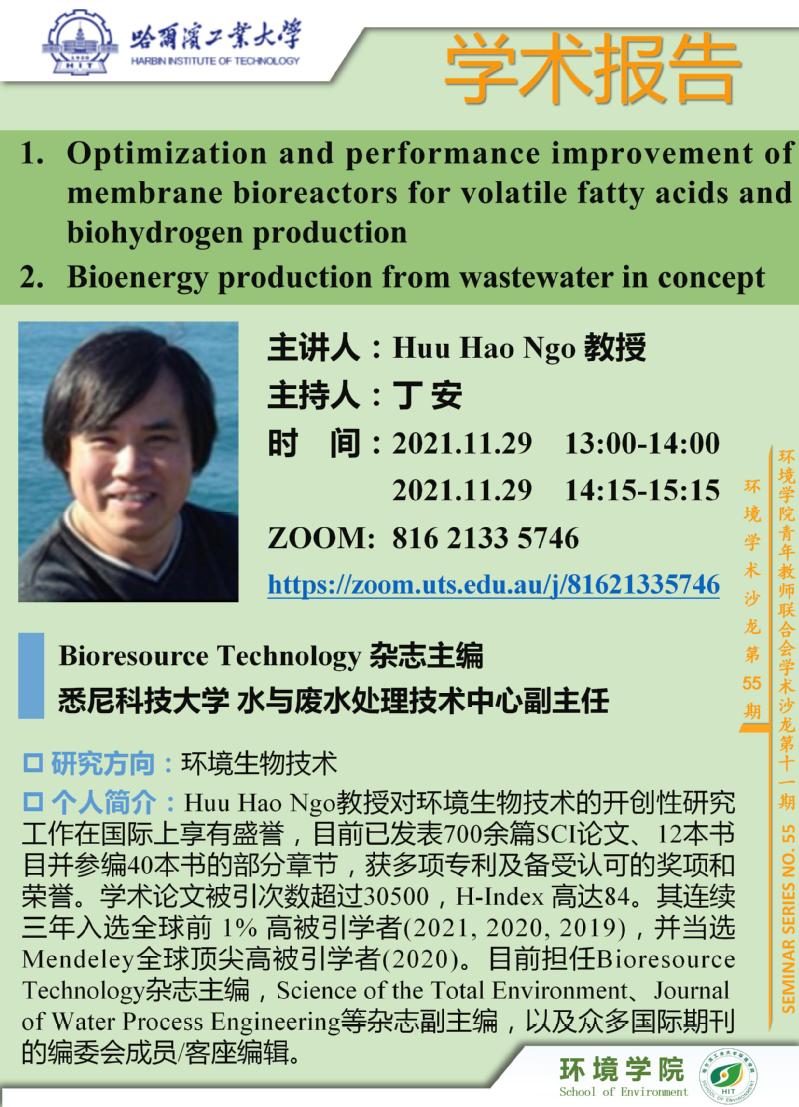 Bioresource Technology 杂志主编、悉尼科技大学水与废水处理技术中心副主任Huu Hao Ngo教授将于2021年11月29日与搜书吧 师生进行学术交流,欢迎感兴趣的师生参加线上学术报告会。