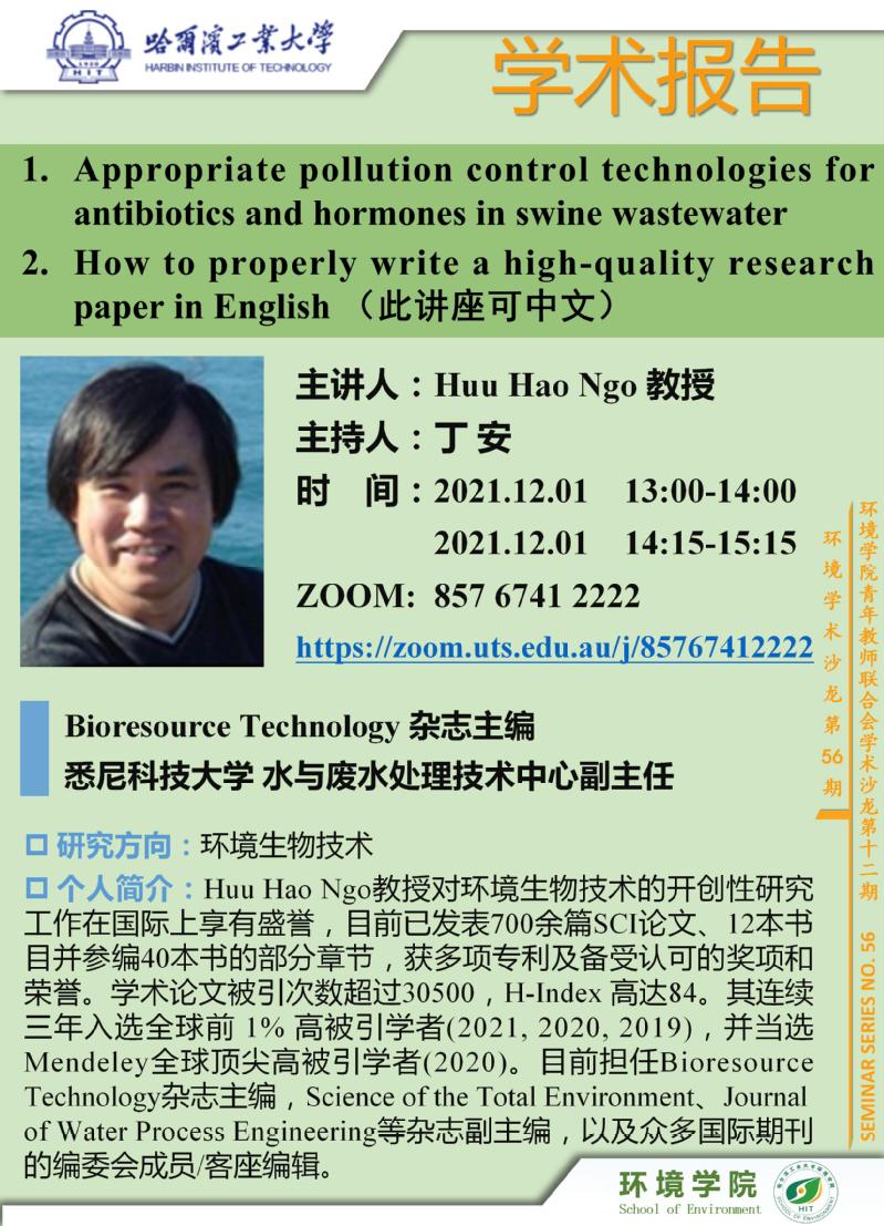 Bioresource Technology 杂志主编、悉尼科技大学水与废水处理技术中心副主任Huu Hao Ngo教授将于2021年12月1日与搜书吧 师生进行学术交流,欢迎感兴趣的师生参加线上学术报告会。