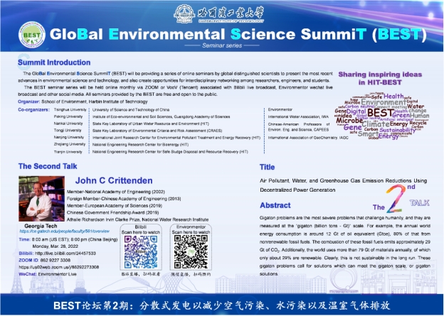 BEST的邀请,BEST第二讲将由来自佐治亚理工学院的John C. Crittenden教授进行