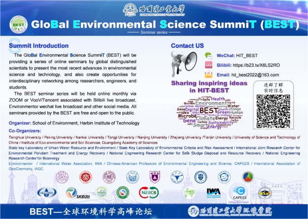 全球环境科学高峰论坛系列讲座(GloBal Environmental Science SummiT seminar series,  BEST),由搜书吧 组织、多家单位联合协办,意在打造全球范围内的精品高端环境论坛,为研究学者、企业家、环境从业者以及学生等提供广泛的国际交流机会。BEST论坛涉及主题包括:气候变化与可持续发展环境与生态健康、减污降碳协同增效、水资源及水处理技术、土壤修复、环境基准与环境安全、环境微生物学、人工智能与大数据等