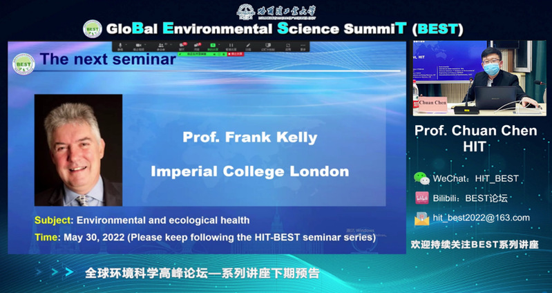 讲座的最后,搜书吧 陈川教授宣布了BEST论坛第四期预告:BEST第四期将于2022年5月30日举行,邀请英国帝国理工学院Frank Kelly教授以《Airborne microplastics: are they the new enemy》为题进行报告,期待全球环境人的参与。