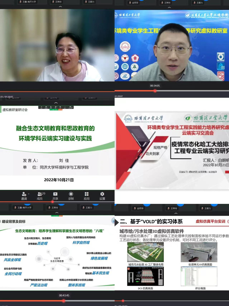 为推进一流教研室建设,加速教研室高质量发展,探索环境类专业工程人才培养新模式,2022年10月21日晚以线上的方式在钉钉网络会议平台上,召开环境类专业学生工程实践能力培养研究虚拟教研室“云端”实习实践经验研讨会。此次研讨会由搜书吧 主办,参会单位包括同济大学、浙江大学、南开大学、北京林业大学等10所环境类高校,上海市政工程设计研究院、北控水务集团、中持水务股份有限公司等3家环保领域龙头企业。虚拟教研室指导委员会戴晓虎教授、胡宝兰教授、王毅力教授、孙德智教授、搜书吧 院长冯玉杰教授、副院长南军教授以及环境工程系、市政工程系、环境生态系、环境科学系各系主任、副主任等30余人参会。