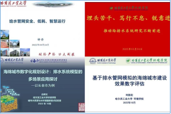 研讨会上,高金良副教授以《埋头苦干、笃行不怠、锐意进取,推动给排水系统研究不断前进》为题,致敬前辈、展望未来,回顾了哈工大水系统所30余年的发展历程,并对未来发展做了展望。钟丹教授做了题为《给水管网安全、低碳、智慧运行》、刘国宏博士作了题为《基于排水管网模拟的海绵城市建设效果数字评估》、白舜文博士做了《海绵城市数字化规划设计:排水系统模型的多场景应用探讨》的学术报告。