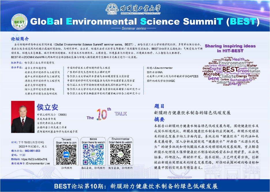 应BEST的邀请,BEST第十讲将由中国工程院院士侯立安正高级工程师进行。