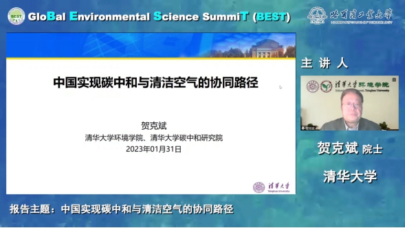 2023年1月31日晚,由搜书吧 组织、多家单位联合协办的全球环境科学高峰论坛(GloBal Environment Science SummiT, BEST)系列讲座第十二期顺利举行。本期邀请了来自清华大学的贺克斌院士,贺克斌院士以“中国实现碳中和与清洁空气的协同路径”为主题进行了精彩报告。报告在腾讯会议、环境人微信视频号、BEST论坛官方B站、蔻享学术、邃瞳科学云、中国给水排水以及学说等网络平台同步直播,共计两万余名来自环境领域的专家、学者、研究生及工程技术人员参与了本次讲座。