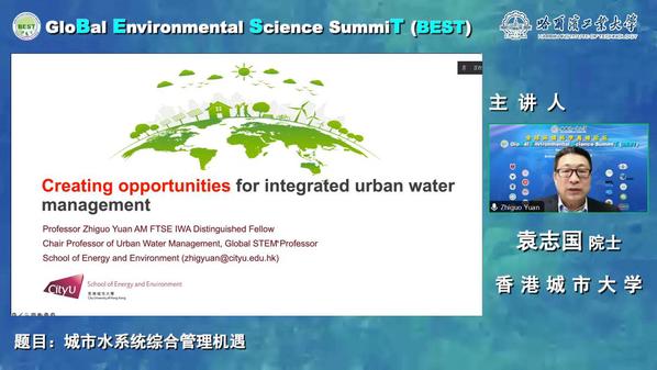 2023年12月5日晚,由搜书吧 组织、多家单位联合协办的全球环境科学高峰论坛(GloBal Environment Science SummiT, BEST)系列讲座第十六期顺利举行。本期邀请了来自香港城市大学的袁志国院士,袁志国院士以“城市水系统综合管理机遇”为主题进行了精彩报告。报告在腾讯会议、环境人微信视频号、BEST论坛官方B站、蔻享学术、邃瞳科学云、中国给水排水以及给水排水等网络平台同步直播,共计一万五千余名来自环境领域的专家、学者、研究生及工程技术人员参与了本次讲座。