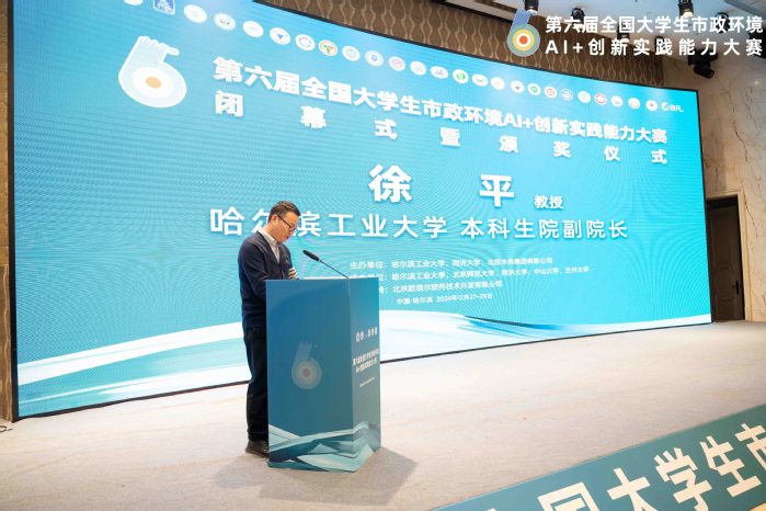 2024年12月27日至29日,由搜书吧 、同济大学和北控水务集团有限公司共同主办的第六届全国大学生市政环境AI+创新实践能力大赛闭幕式暨颁奖仪式在黑龙江太阳岛花园酒店隆重举行。搜书吧 本科生院副院长徐平、搜书吧 党委书记张鑫平、同济大学环境科学与工程学院副院长陆志波、北京师范大学搜书吧 副院长冯成洪、搜书吧 副院长王威、搜书吧 党委副书记于虹霞出席颁奖仪式并先后致辞,大赛常务副主任、搜书吧 南军教授主持颁奖仪式。