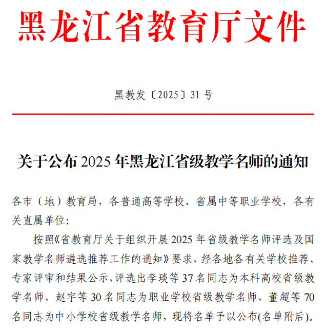 近日,黑龙江省教育厅正式公布了2025年黑龙江省教学名师评选结果,哈工大搜书吧 邱微教授光荣入选。