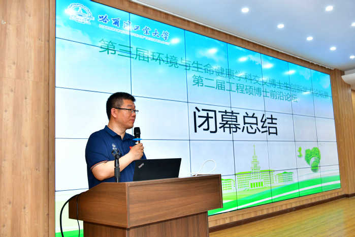 论坛闭幕式由生命科学和医学学部副主任聂桓主持。龙江环保集团副总裁张福贵、哈工大水资源国家工程研究中心有限公司董事长吴传栋博士分别以“国家供排水行业规划及黑龙江省供排水现状的思考”“水务发展与科技创新”为题,结合工程实践分享行业前沿动态。随后,论坛对优秀口头报告、墙报、摄影作品及科研实践案例进行颁奖。