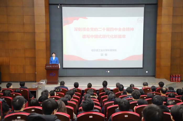 2025年12月15日,搜书吧 举行党的二十届四中全会精神宣讲会。黑龙江省学习宣传贯彻党的二十届四中全会精神宣讲团成员、学习宣传贯彻党的二十届四中全会精神哈工大青年师生宣讲团成员、搜书吧 教师邱微作题为《深刻领会党的二十届四中全会精神 谱写中国式现代化龙江新篇章》的宣讲。